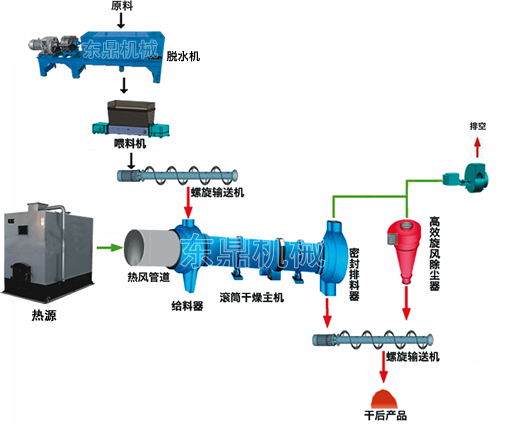 紅薯渣烘干機解決了這一難題,根據研究,烘干后的紅薯渣可以長期保存半年以上的時間,提高了紅薯渣飼料的長期保存的難題,該款烘干機主要由脫水設備、熱源、上料機、進料機、烘干系統、出料機、引風機、卸料器和配電柜、粉碎系統、打包系統等部件構成,水分含量高達80%以上的濕酒糟經脫水設備擠壓脫水后水分降到65%左右,然后經螺旋上料機進入干燥系統,在干燥滾筒內均布的抄板翻動下,進行均勻分散與熱空氣充分接觸,加快了烘干傳熱、傳質。在烘干過程中,糟渣在帶有傾斜度的抄板和熱介質的作用下,至飼料烘干機星形卸料閥排出烘干成品。