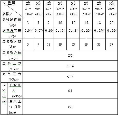 板框壓濾機主要分為主機和液壓兩個部分。主機主要就是止推板、壓緊板、濾板、 油缸、油缸座、橫梁六個部分組成。板框壓濾機由隔膜板和廂式濾板排列組成濾室,在輸料泵的壓力作用下將漿料輸入濾室,通過過濾介質(濾布)將漿料中的固體 和液體分離,當漿料中的固體形成餅后,再向隔膜通入空氣,對濾室內的固體充分壓榨,降低含水率。對于粘性物料的過濾及對含水率要求較高的用戶,此機更有其獨特的特性。